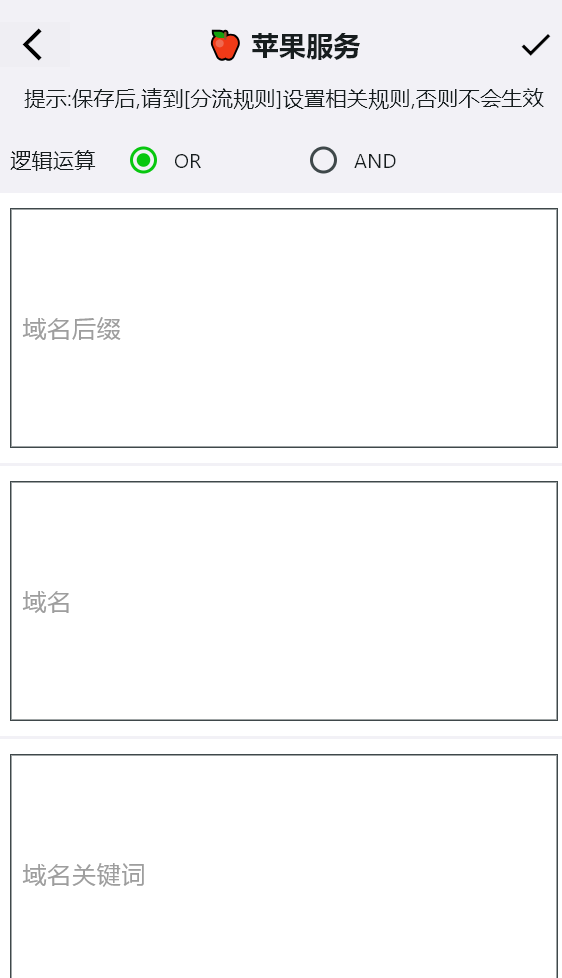 编辑自定义分流组:各分项之间支持OR/AND逻辑运算